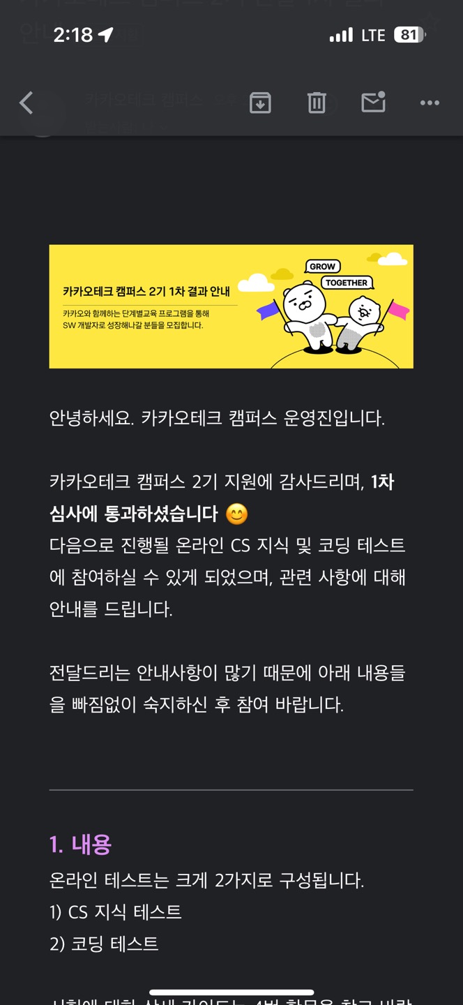 그러다가 이렇게 취업안될빠에는 대기업에서 운영하는 테크캠퍼스에 지원해봤다. 여기도 1차는 합격했지만 코테와 cs에서 탈락,,,,
