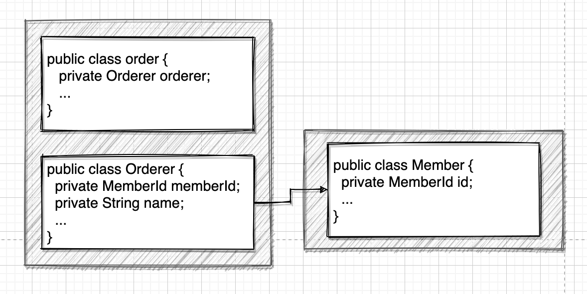 Long 타입으로 변경하므로써 Member의 식별자 값만 받도록 하였다. 이렇게 하면 Member애그리거트를 안전하게 보호할 수 있고 Order 애그리거트에만 집중할 수 있다