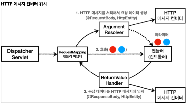 그니까 컨트롤러 메서드를 만들때 @RequestBody라든지 @PathVariable를 사용한적이 있을것이다. 이때 HandlerMethodArgumentResolver가 HTTP메세지를 처리해주는 것이다.