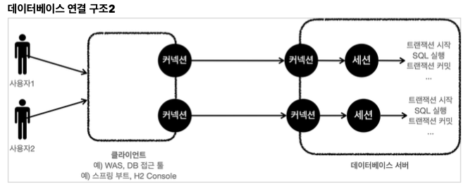 -> 이때 데이터베이스는 내부에 세션이라는 것을 만들어서 해당 커넥션을 통한 모든 요청은 이 세션을 통해 실행